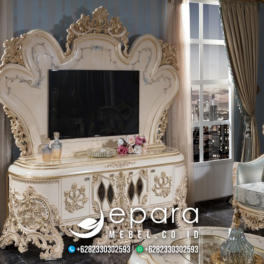 Menggabungkan kemewahan gaya klasik dengan kesederhanaan modern. Elemen ukiran halus bisa tetap dipertahankan agar dapur tidak kehilangan pesonanya.