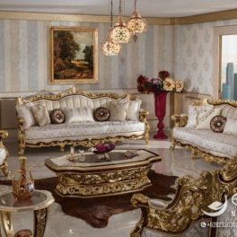 - Sofa Tamu Klasik Model Kombinasi Cream Gold JM-130