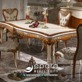 - Meja Makan Jati Klasik Mewah Kombinasi Coklat Gold