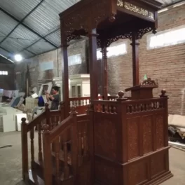 Mimbar Masjid Ukiran Kayu Jati Dengan Penutup Bagian Depan